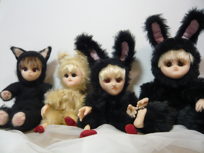 それを4体ほどと、¥100ショップで買った人形の(リカちゃんタイプ)